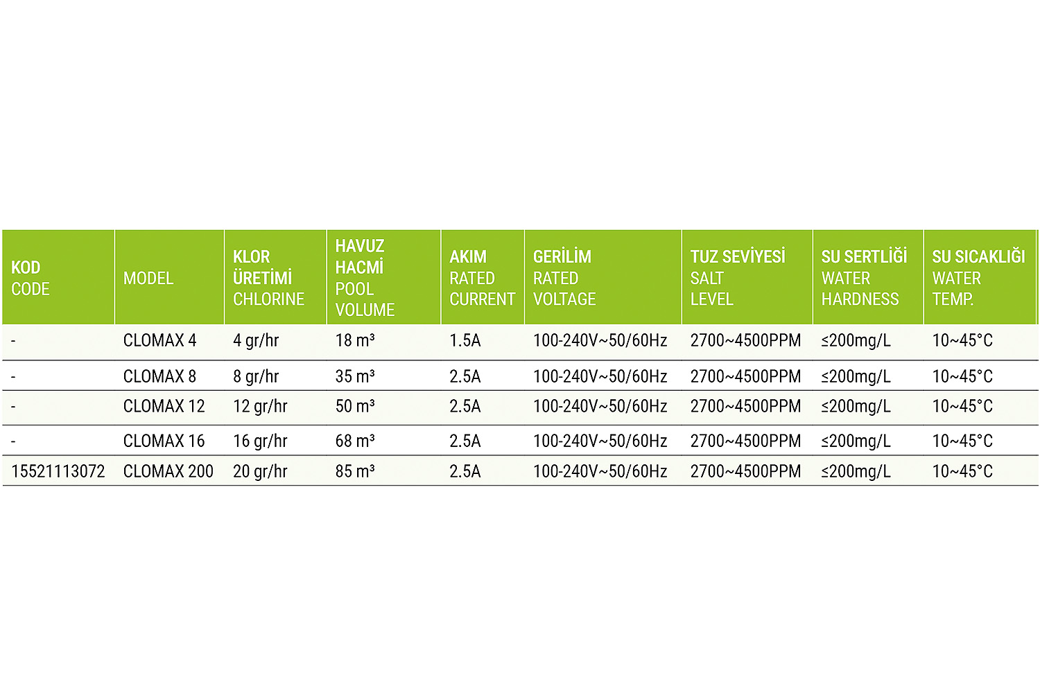 85 m³ havuzlara kadar uygundur