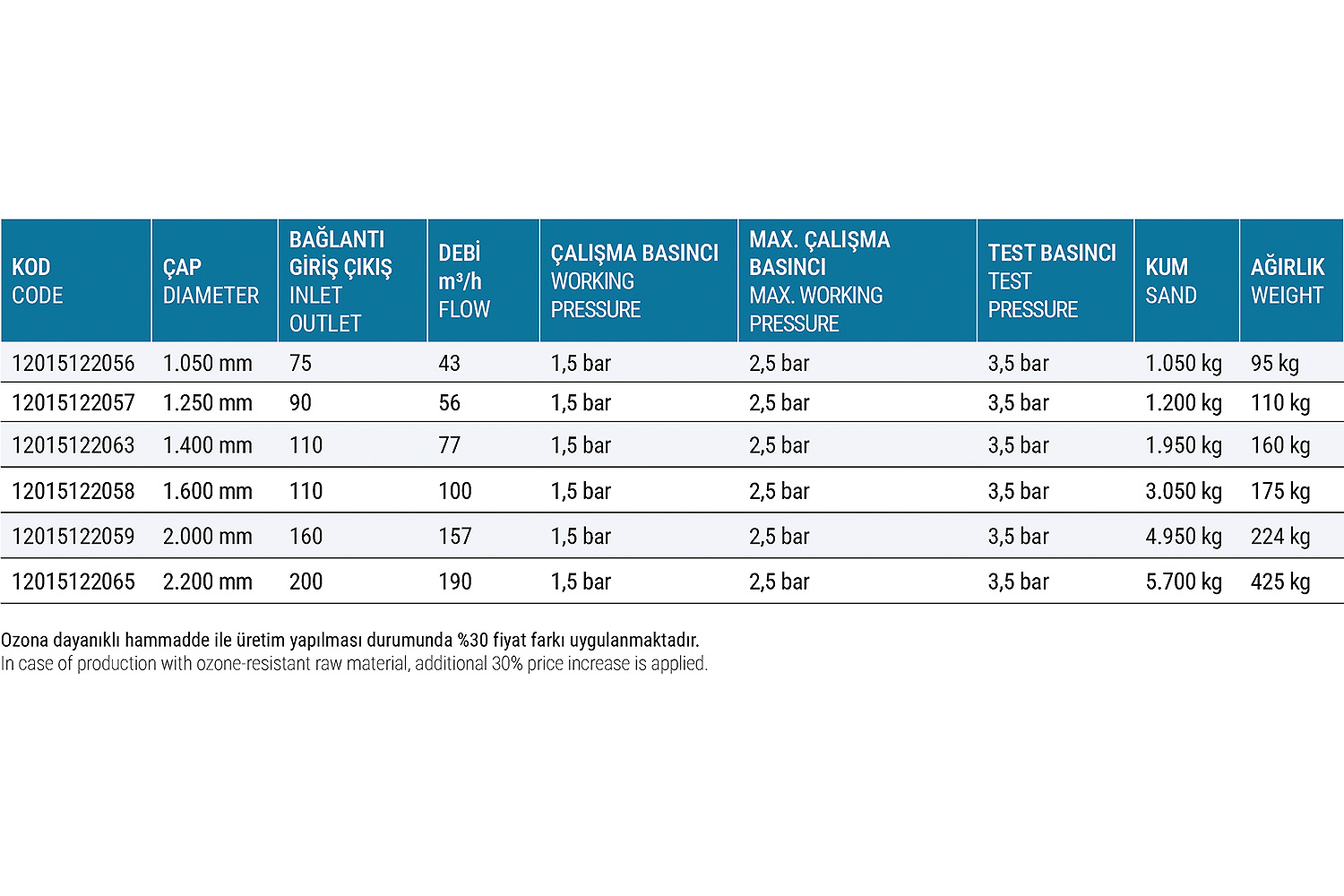 • Test Basıncı: 3.5 bar